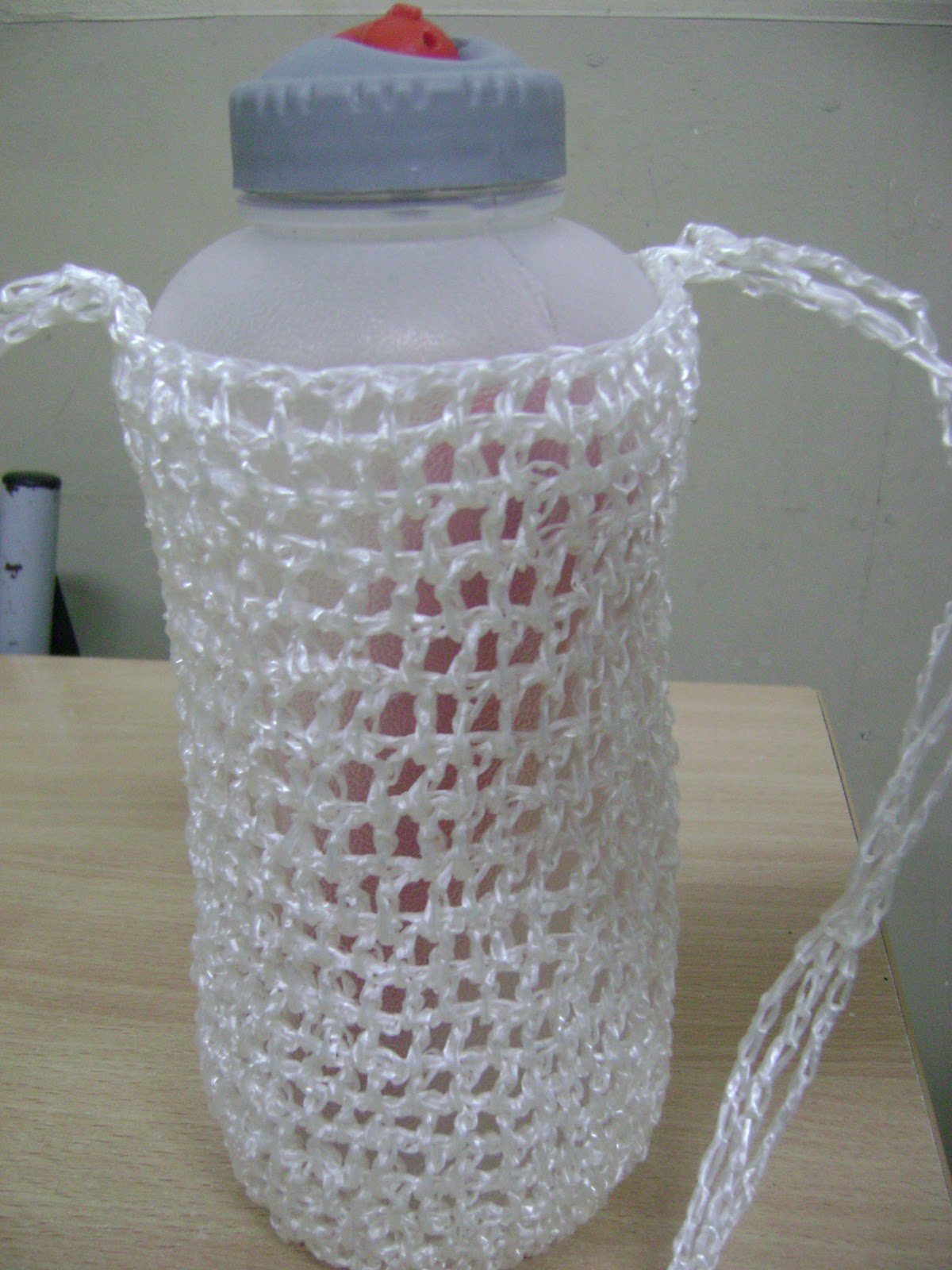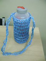 buenos les cuento un poquito como veran sigue sobrando hilo plastico, asique mi hija me pidio que le hiciera un bolsito para la playa y un porta botella y santi no se quizo quedar atras, asique me pidio otro porta botellas. los cuales teji a todo velocidad porque los niños estaban anciosos. y como sigueee sobrando hilo tendre que inventar otra cosilla, obviamente estaran al tanto.. como siempre.